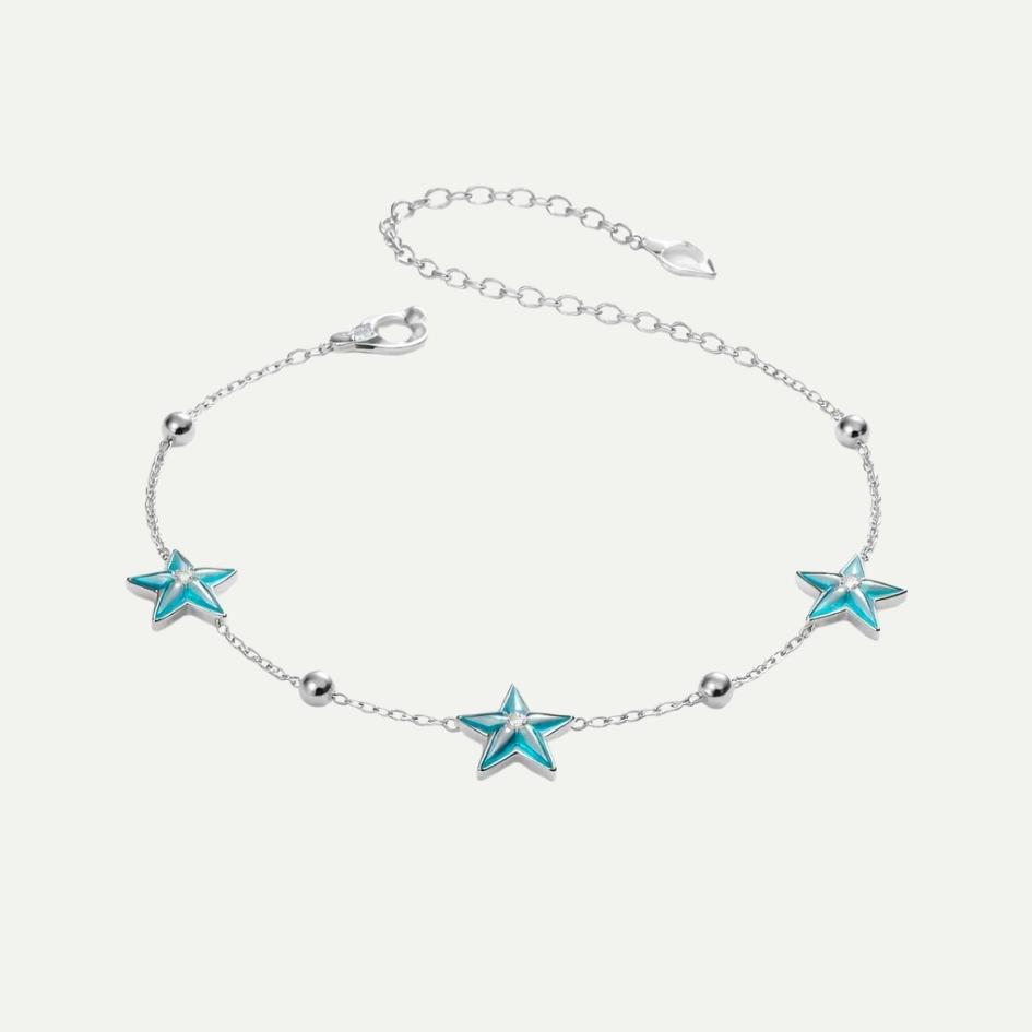 Decorato con piccoli zirconi e tre elementi a stella marina dal tono acquamarina.