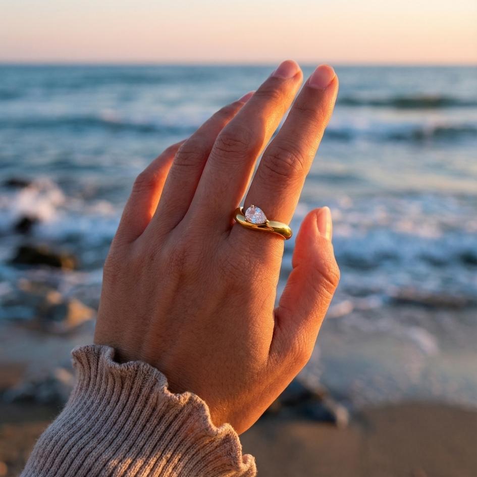 Realizzato in acciaio inossidabile con placcatura dorata lucida e zircone centrale incastonato con cura, unisce comfort e resistenza nel tempo. Perfetto da indossare da solo come protagonista assoluto o abbinato ad altri anelli marini della collezione.