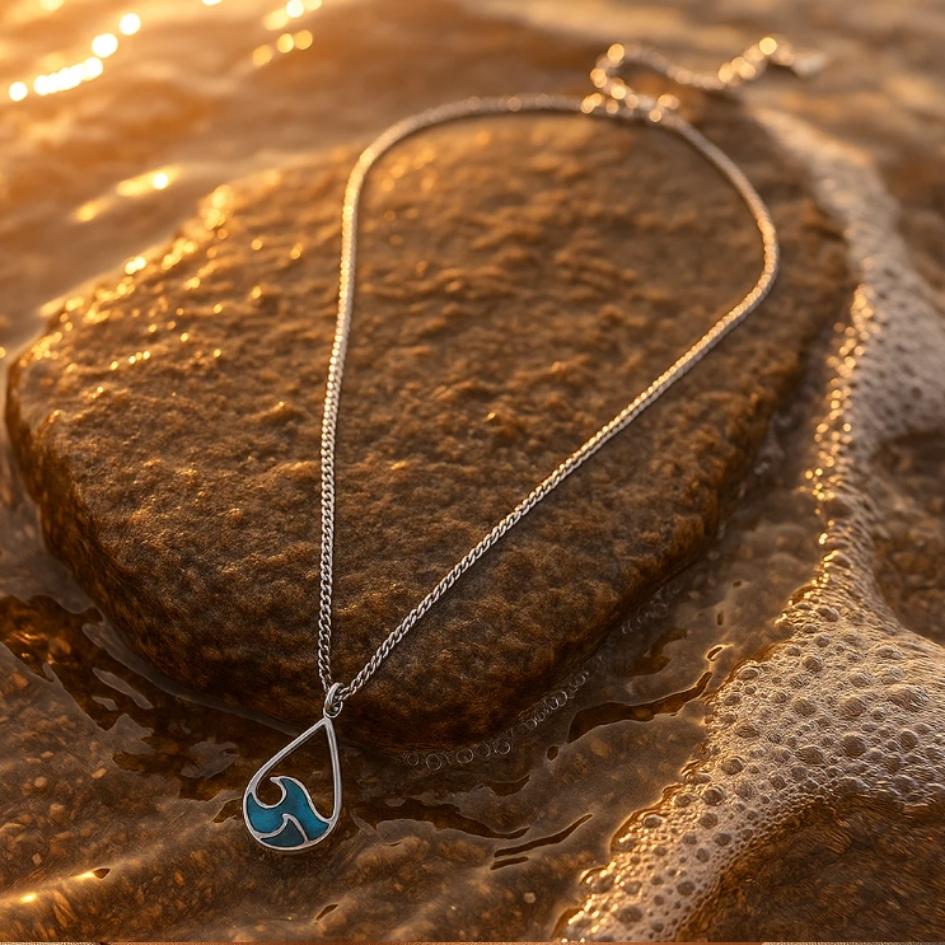 Un design semplice ma evocativo, che richiama l’acqua, la libertà e il respiro lento delle onde. Perfetta da indossare ogni giorno per portare con sé un simbolo di calma e forza.
