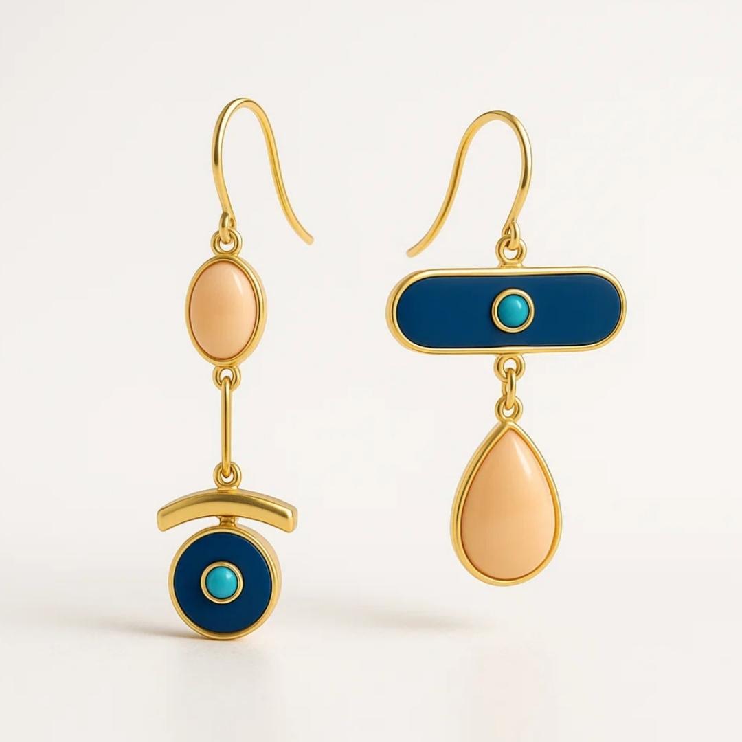 Gli Orecchini “Cilo” catturano proprio quella sensazione un’armonia perfetta tra il blu dell’orizzonte e il calore dell’oro al tramonto.