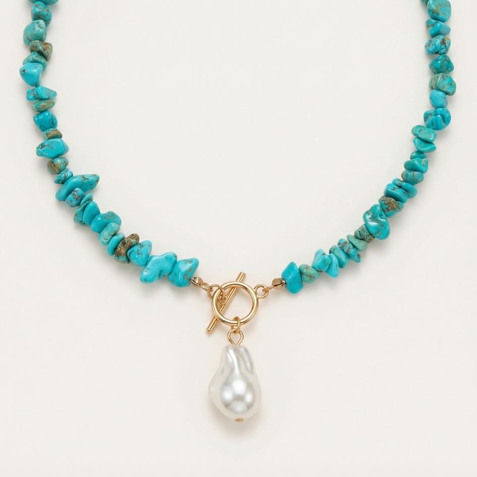 Leggero ma d’impatto, è realizzato in piccole pietre marittime e acciao inossidabile argentato, che culmina in una grossa perla smaltata. Un design unico e potente, pensato per chi ama distinguersi con autenticità e stile.