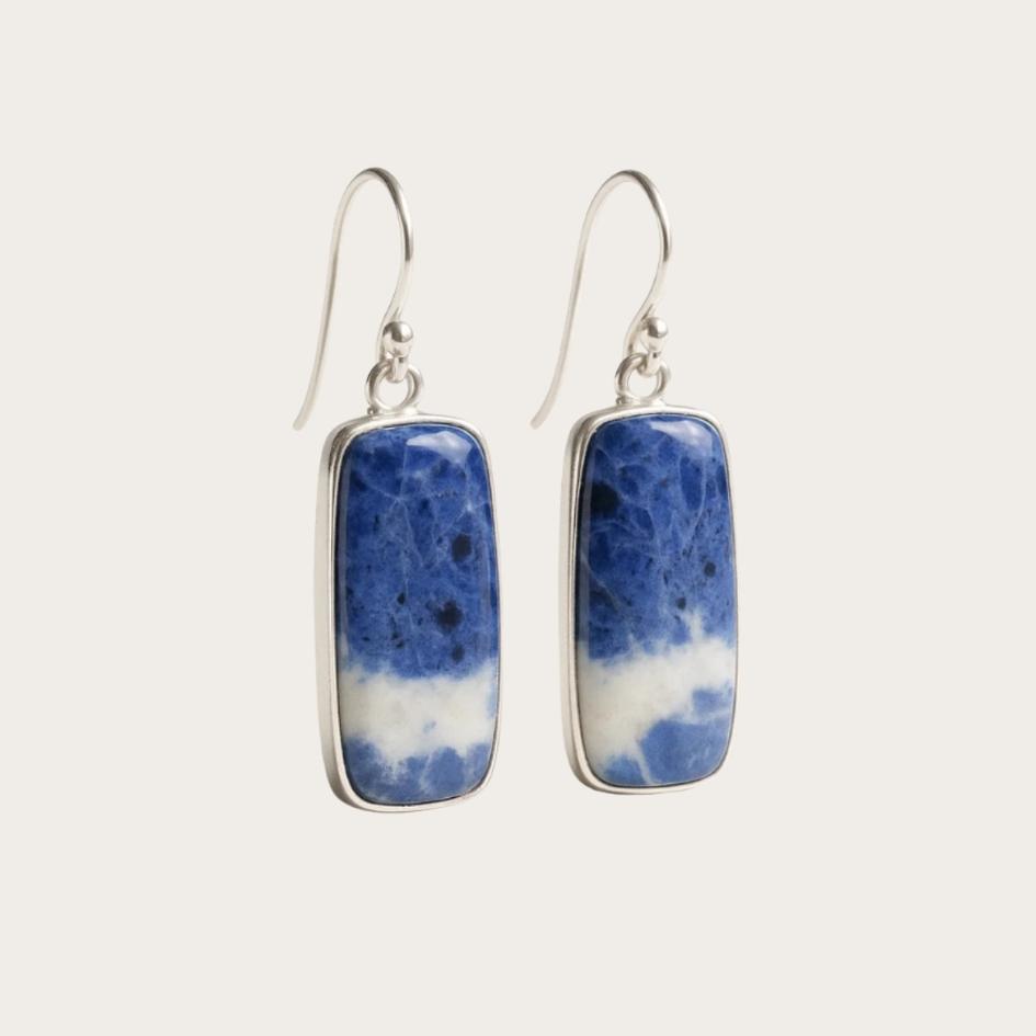 Le pietre rettangolari, con sfumature blu intenso e venature bianche, evocano il movimento delle onde che si infrangono sulla riva. Un design semplice ma elegante, pensato per chi ama portare con sé un frammento autentico di natura.