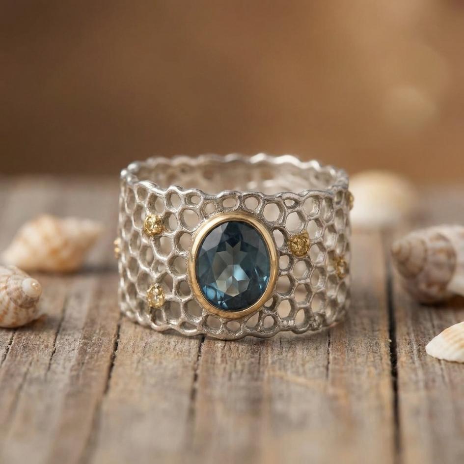 Un anello boho dal carattere marittimo, elegante senza eccessi, pensato per dare personalità ai look quotidiani.