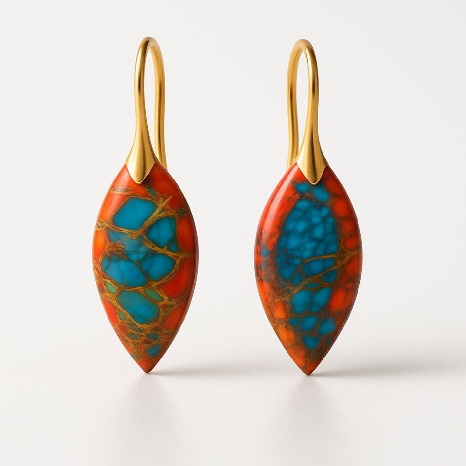 Gli orecchini Elaria richiamano la vitalità delle spiagge di Mauritius, dove il turchese del mare incontra la vivacità dei coralli rossi sotto la superficie.
