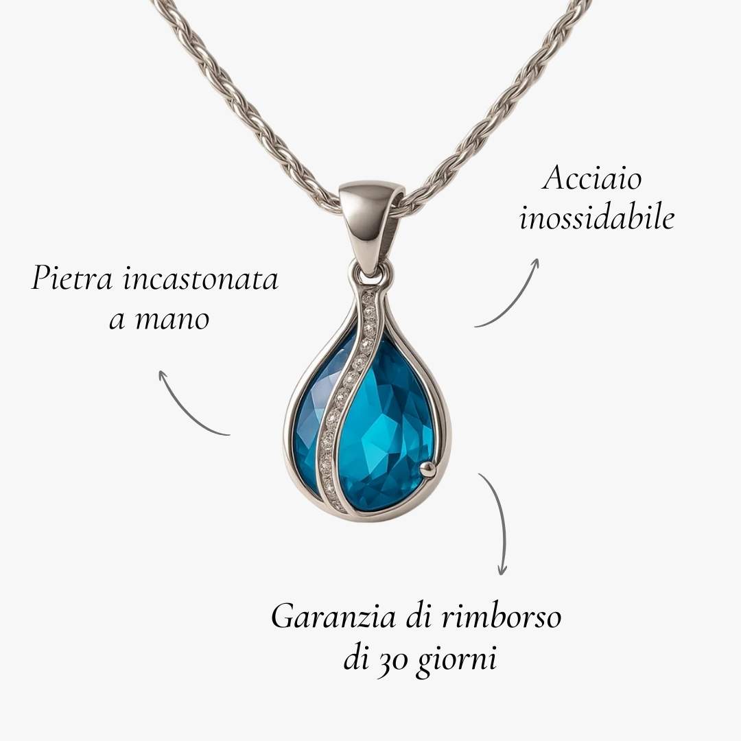 Goccia di Luce – Collana con zircone blu e finitura argentata