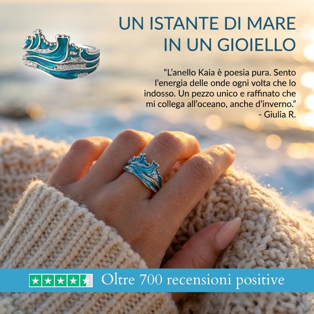 Un anello che sembra catturare l’istante in cui le onde si sollevano e si infrangono, trasformando il movimento del mare in un gioiello da indossare.
