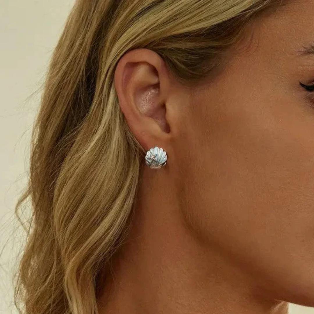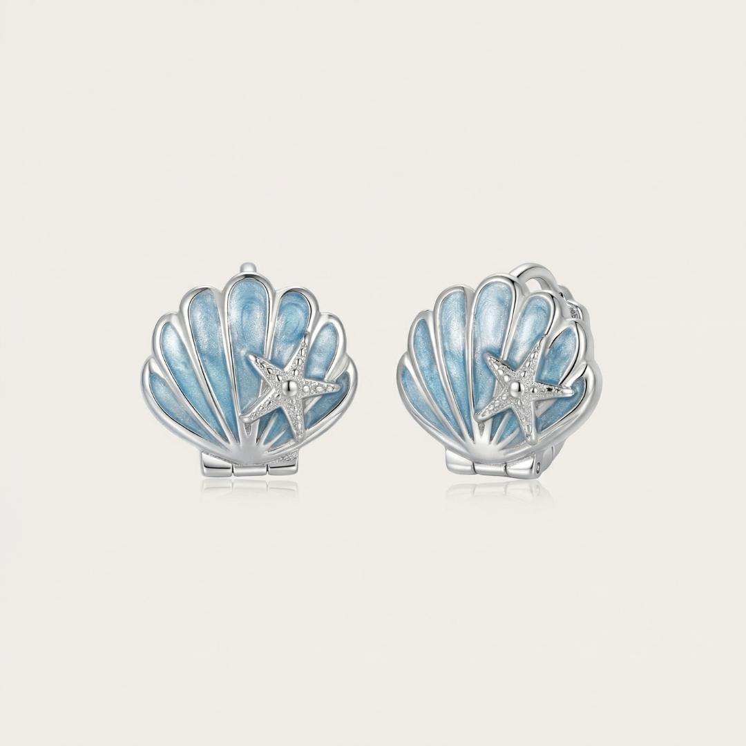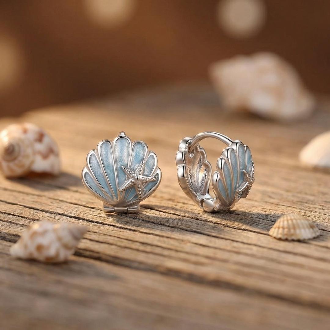 Una conchiglia che racchiude la luce dell’alba e una piccola stella marina che veglia silenziosa. Un incontro delicato che parla di mare calmo, di promesse sussurrate tra le onde.