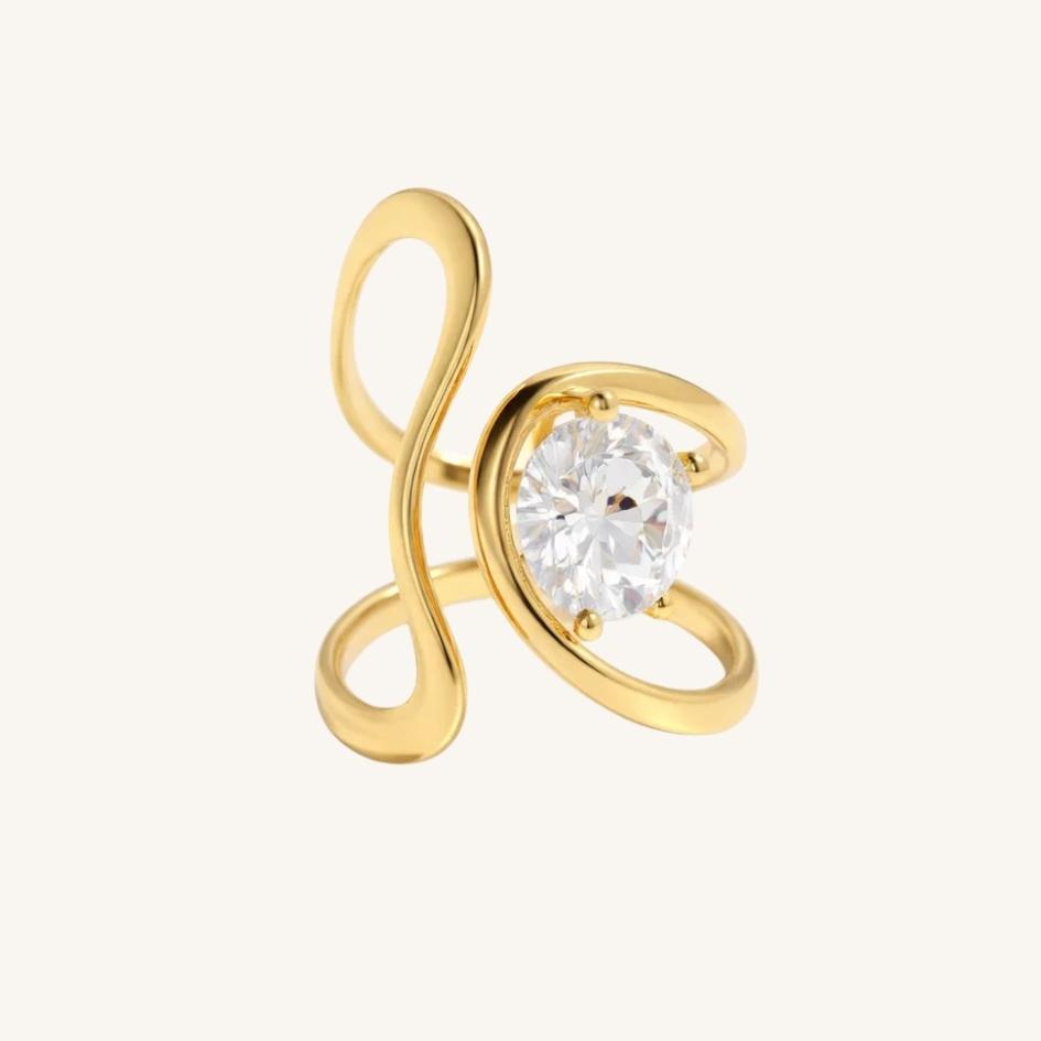 Realizzato in acciaio inossidabile color dorato con zirconi luminosi, รจ un anello regolabile, pensato per adattarsi con facilitร e restare comodo ogni giorno.