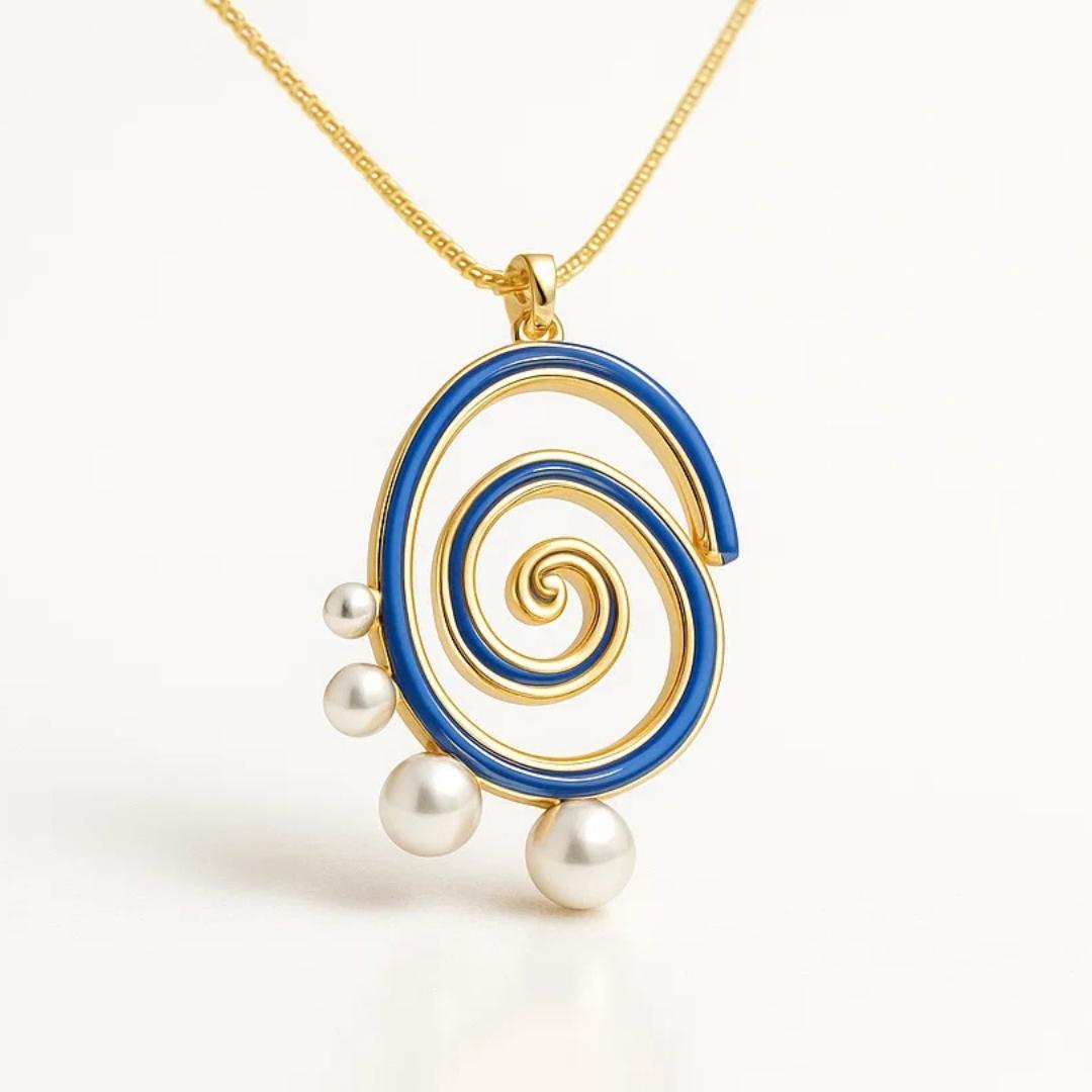 La spirale, simbolo eterno di onde e di vita, prende forma in questa collana come un richiamo profondo all’oceano.