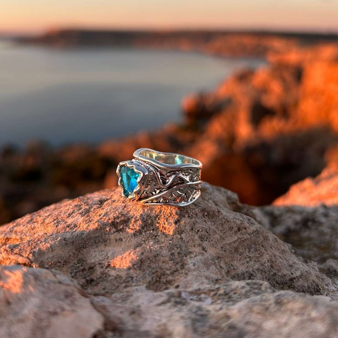 Avvolta nel silenzio incantato dell’inverno, questa creazione evoca l’essenza di un mare ghiacciato, un riflesso cristallino che cattura l’anima di ogni donna che desidera un tocco di magia boho.
