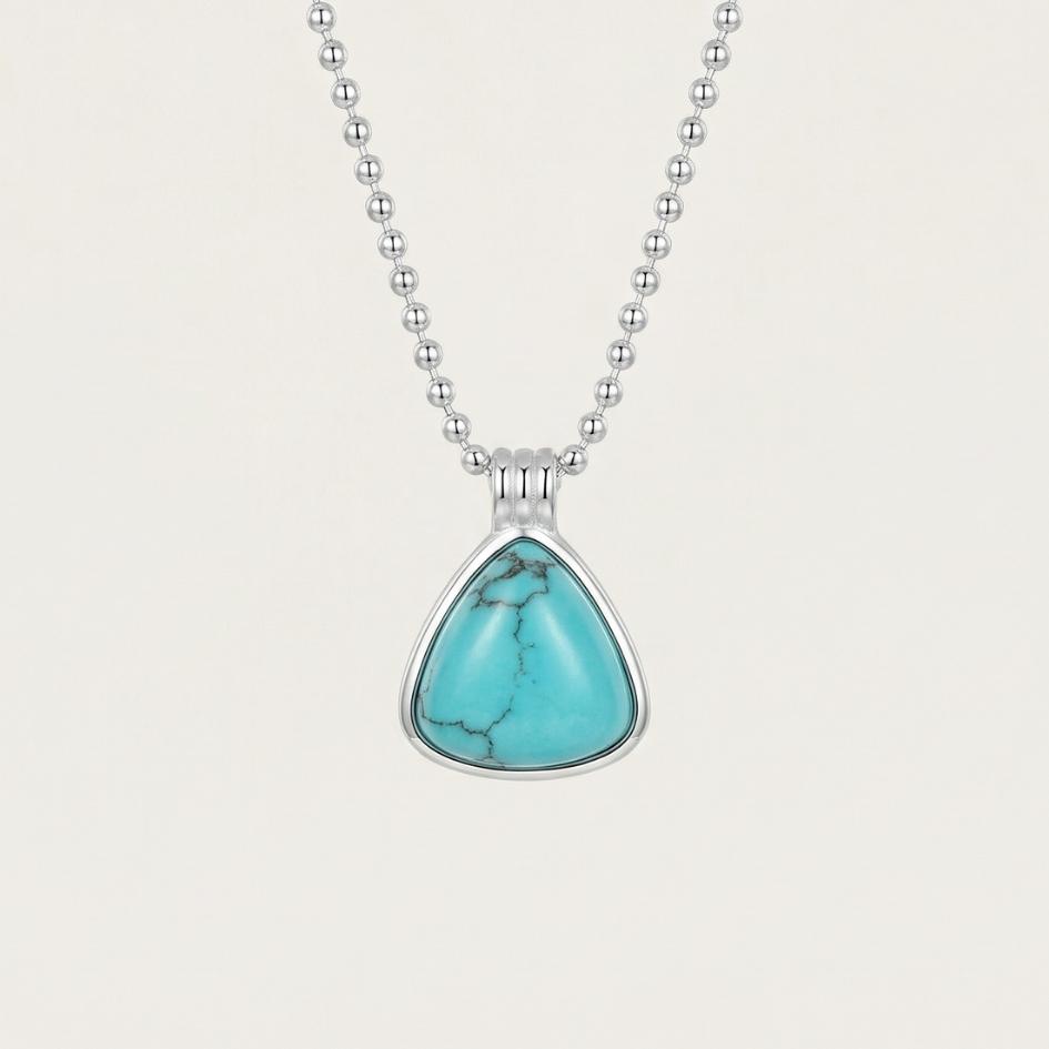 Tiseide è realizzata in placcatura argento con pietra turchese accuratamente selezionata e incastonata a mano. La catena è lunga circa 45 cm, una lunghezza ideale per appoggiarsi al centro del décolleté e accompagnare i tuoi gioielli preferiti.